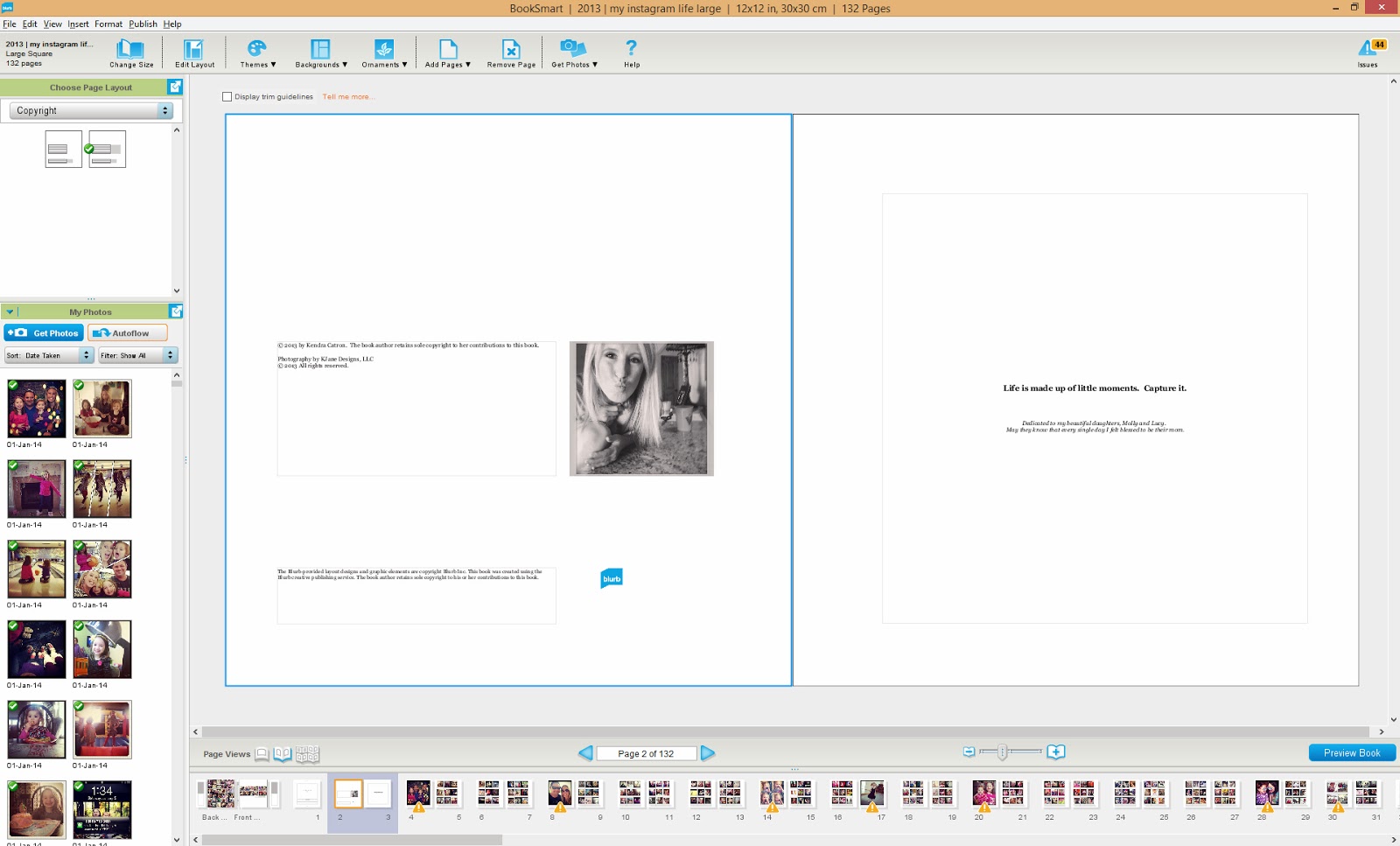 If you chose to drop your photos in yourself, this is where you'll do it. Because everyone will want to do their book differently, I've just listed out a few tips that I found helped me along the way.